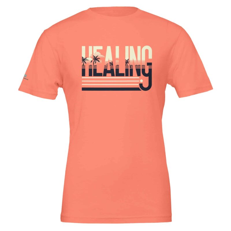 Healing – Sunset-Inspired Typography Design | Calming Unisex T-Shirt | Beach Vibes for a Peaceful Mind! This beautiful design features the word “Healing” in bold typography, with a serene sunset and palm trees woven into the letters. The pastel colors and calming vibes evoke a sense of peace and relaxation, making this design perfect for those seeking balance and tranquility. With its blend of beach elements and soothing tones, this shirt is an ideal choice for beach lovers, yogis, or anyone on a journey of healing.