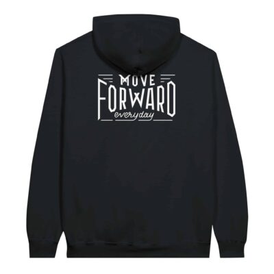 “Move Forward Everyday Hoodie | Motivational Minimalist Design”. This design features the uplifting phrase “Move Forward Everyday” in a sleek, minimalist font. The clean and simple white text stands out prominently, delivering a positive and motivational message. The elegant typography adds a touch of modern sophistication, making this design a perfect choice for those who believe in continuous progress and positivity.